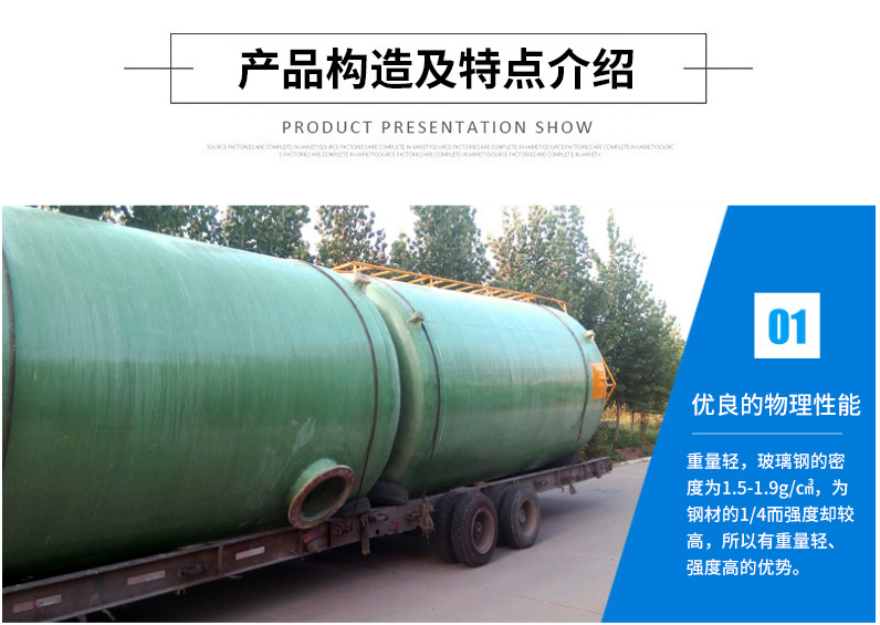 描述:特點①優良的物理性能:重量輕,玻璃鋼的密度為1.5-1.9g/cm3,為鋼材的1/4,而強度卻較高,所以有重量輕、強度高的優勢。②耐化學腐蝕,使用壽命長:通過選用不同種類的樹脂,可以耐各種酸、堿、鹽以及多種油類和溶劑,可廣泛應用到化工防腐的各個方面,可以替代不銹鋼、有色金屬等材料。③設計靈活性大,罐壁結構性能優異:通過改變樹脂系統或增強材料來調整玻璃鋼制品的物理化學性能,以適應不同介質和工作條件的