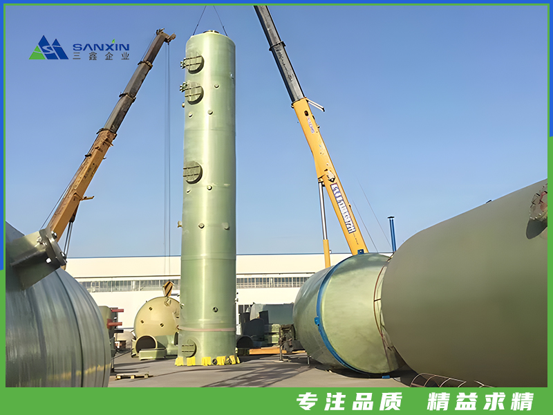 BJS型酸氣凈化塔采用玻璃鋼和聚氯乙烯材料分段制作。塔體 外表面采用耐水、耐老化膠衣樹脂作防老化面層 ,膠衣層厚不小于 0. 5mmo在強度與內外表面間采用無一蠟無捻的方格細布作為耐老 化的渡層其樹脂含量不低于75。4,層數按大型及技術標準要求敷設, 樹脂含量達60-70%,使塔體強度絕對可靠